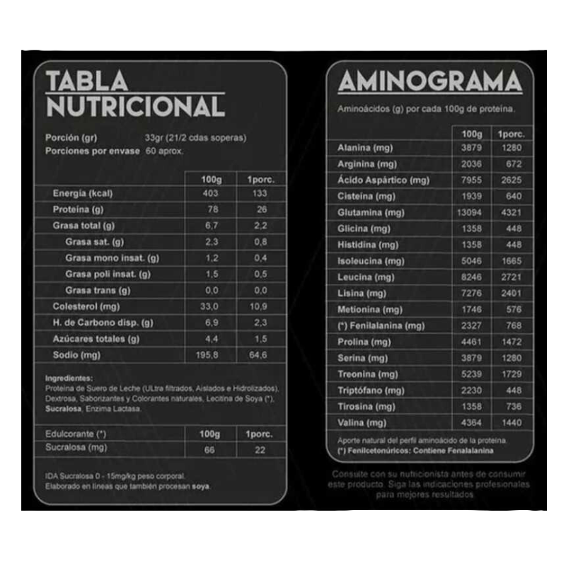 La más reciente y mejorada proteína (Serie Platinum). Mayor cantidad de proteína (27 grs), CERO grasa y azúcar. Reforzada con
