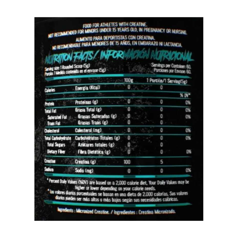 - 100% PURE Creatina Micronized – 300 grs / 60 servicios, unflavored, HEXACORE.