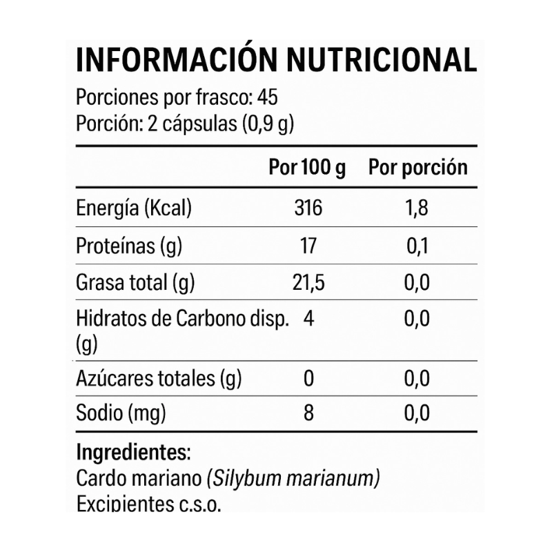 SILIMARINA Cardo Mariano 450 mg – 90 caps / 45 servicios
