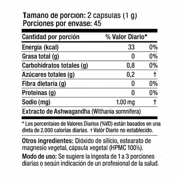 ASHWAGANDHA 1000 mg – 90 caps / 45 servicios