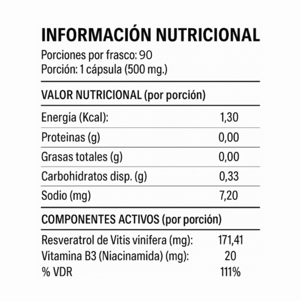 NAD + RESVERATROL 500 mg – 90 caps / 45 servicios