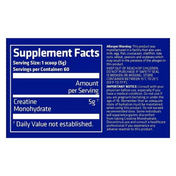 CREATINA Monohydrate POWDER – 300 grs / 60 servicios, unflavored
